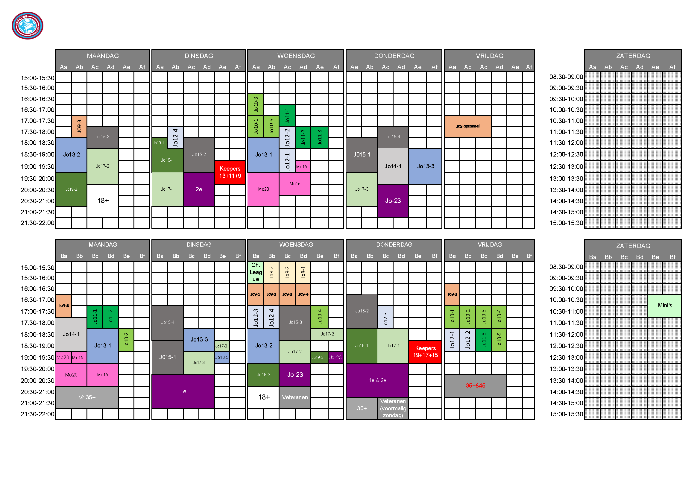Hieronder het trainingsschema voor het seizoen 2025-2026 (